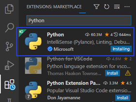 2.1. 安装插件 想要在VS Code中debug,首先需要安装一个Python插件,这里推荐微软自己的Python插件