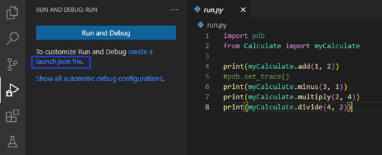 2.4. 个性化配置debugger 除了使用默认的debugger配置文件,还可以通过维护launch.json文件来进行个性化设置,具体步骤如下: