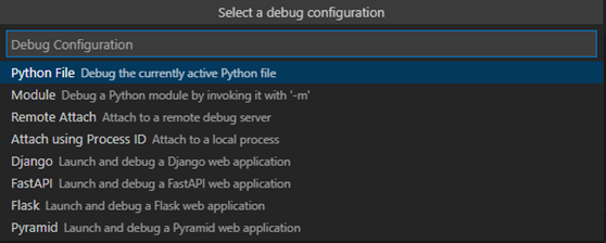 2.3. 启动Debugger 按F5进入debug模式,此时程序会停在断点的位置,第一次执行debug需要选择配置文件。