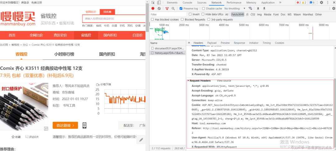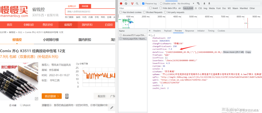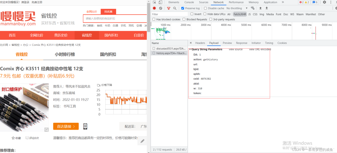 买东西大家都喜欢看商品的历史价格看现在是否低价,作者平时购物喜欢使用慢慢买查看历史价格,但其实别的平台也有比价软件,如果都能一次性下载下来,然后相互参考就可以得到全面的最低价格,下面作者就用Python爬取慢慢买的商品历史价格,大家可以触类旁通进行横向拓展。