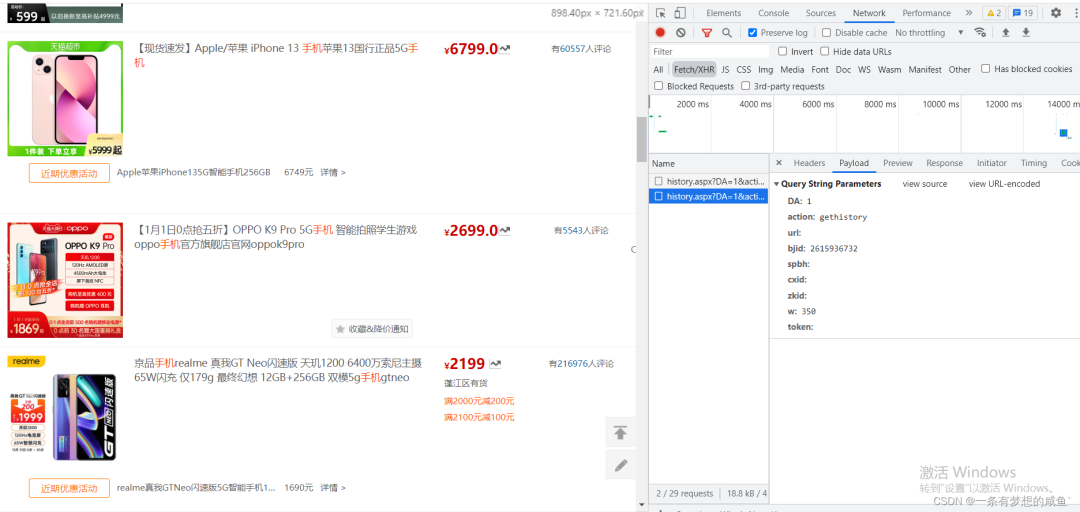 首先使用谷歌浏览器打开慢慢买网页,F12然后随意点击一个商品,查看接口: