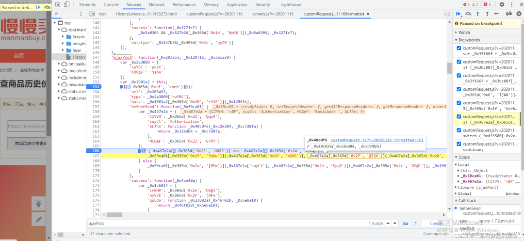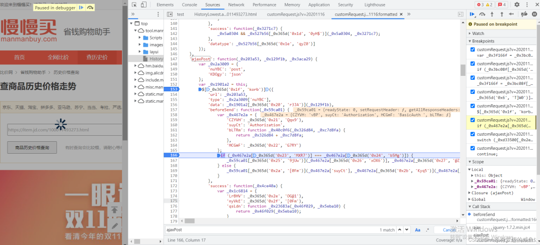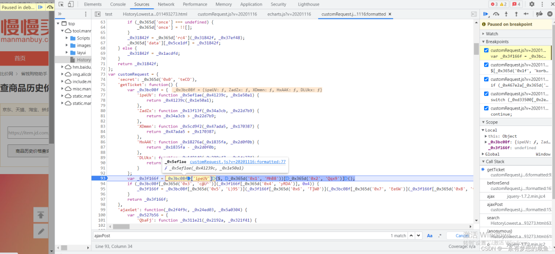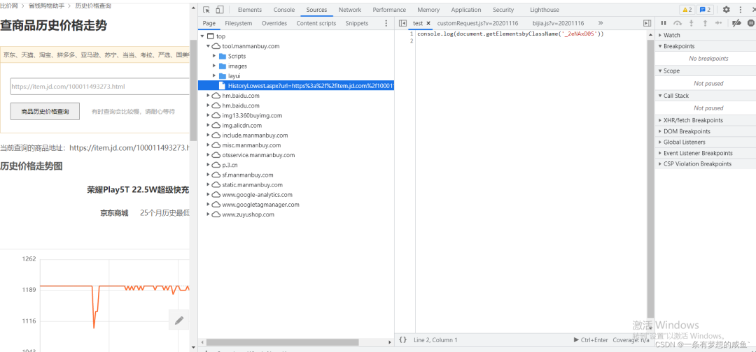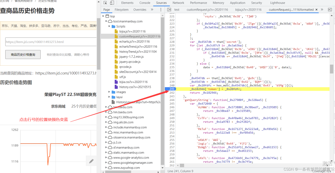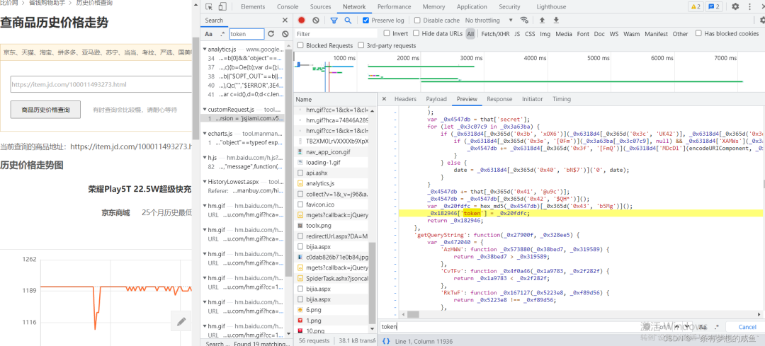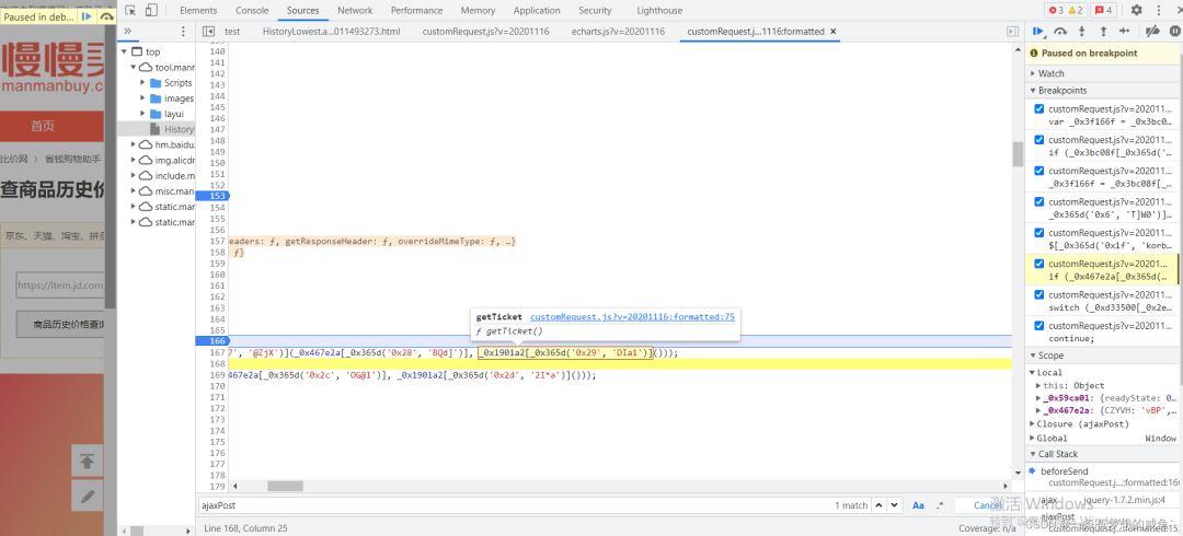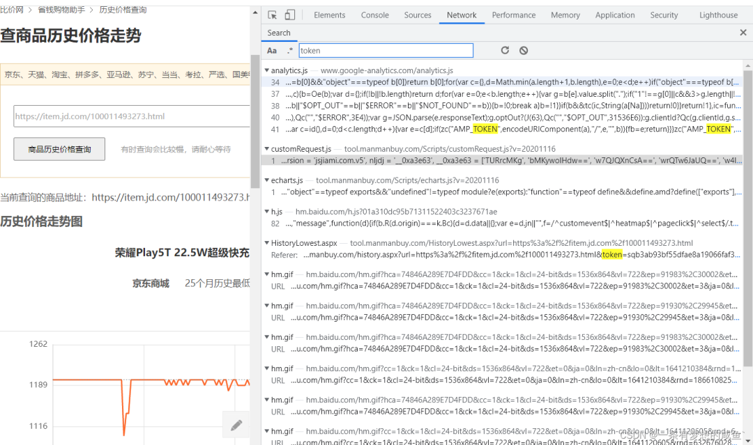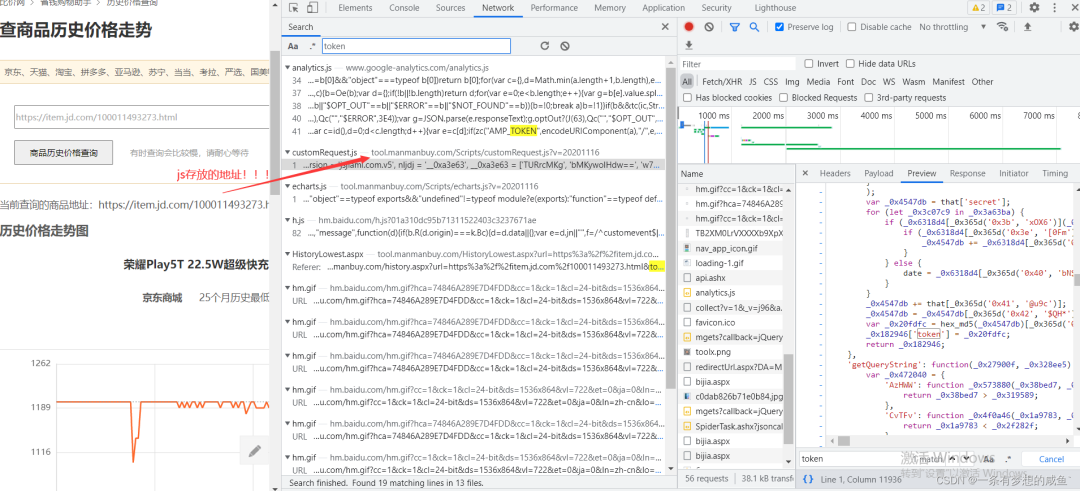 从之前的Network的图中可以发现cutomRequest.js文件是在tool.manmanbuy.com/Scripts目录下的,什么?你没看见?那我再给你截图标明一下: