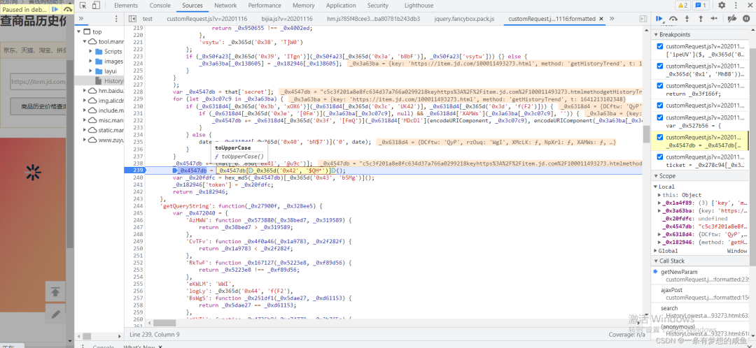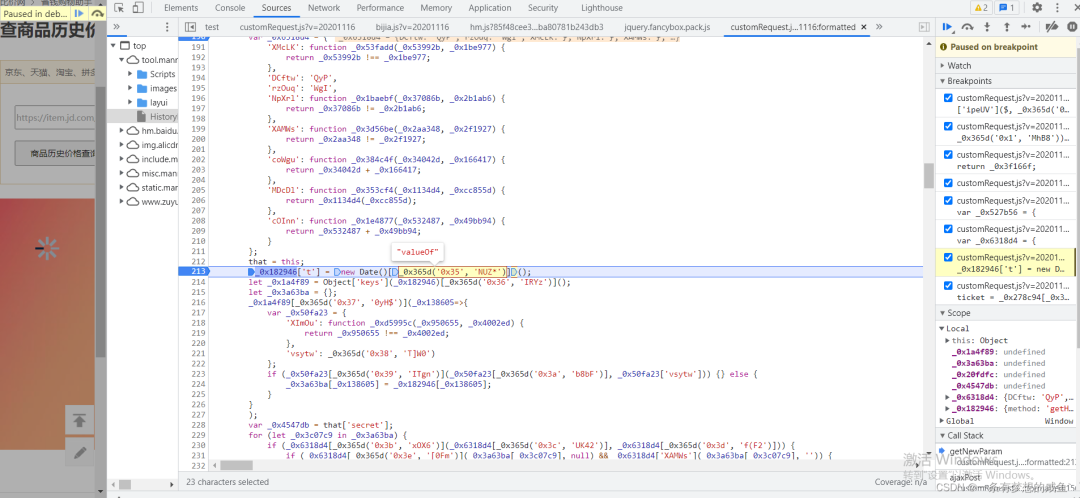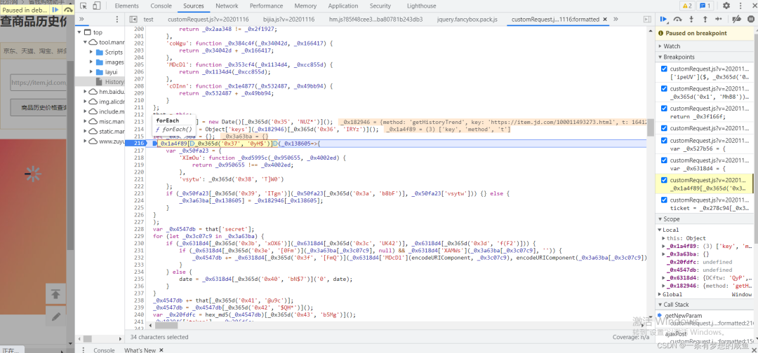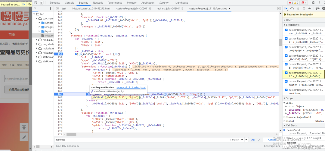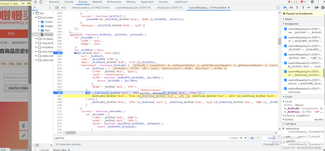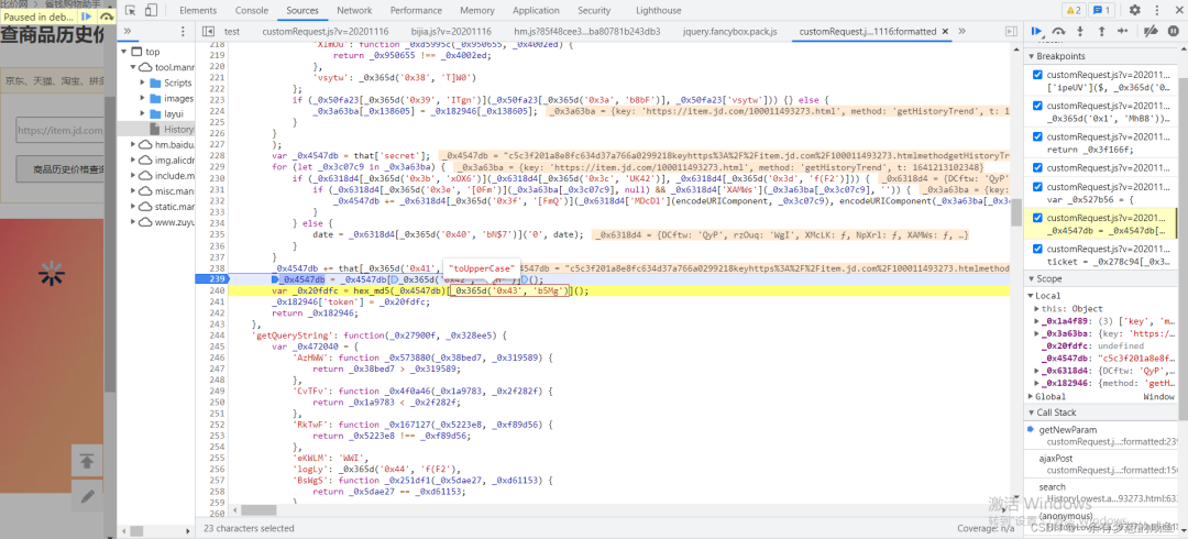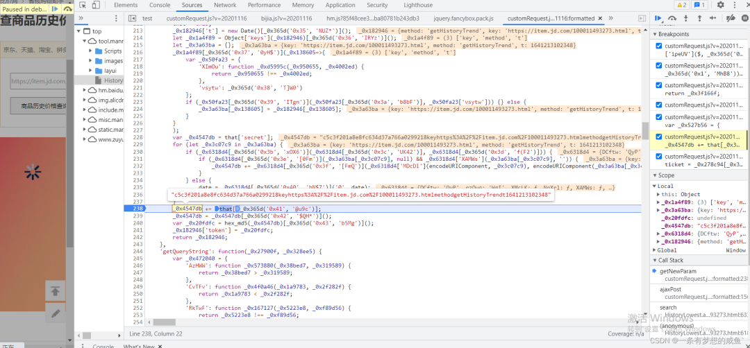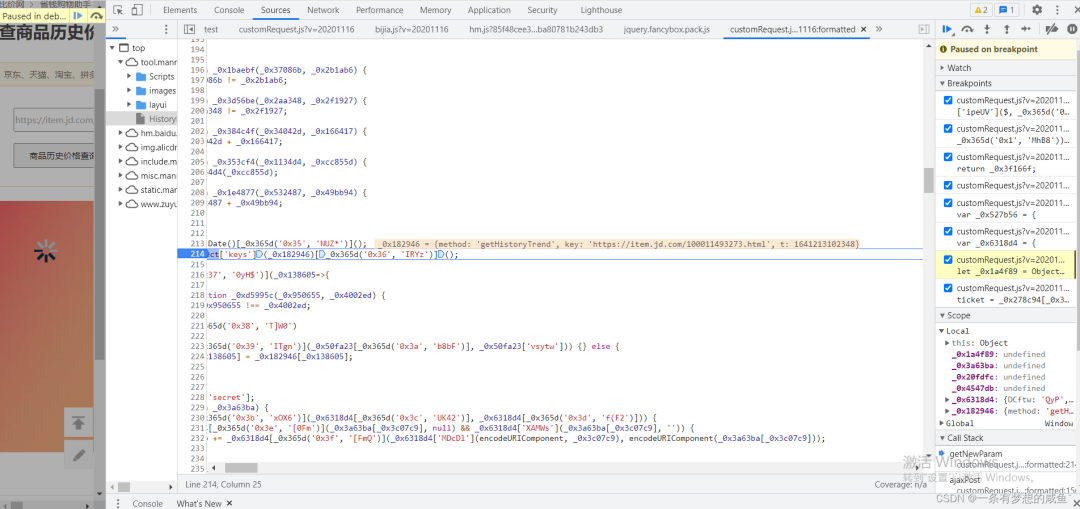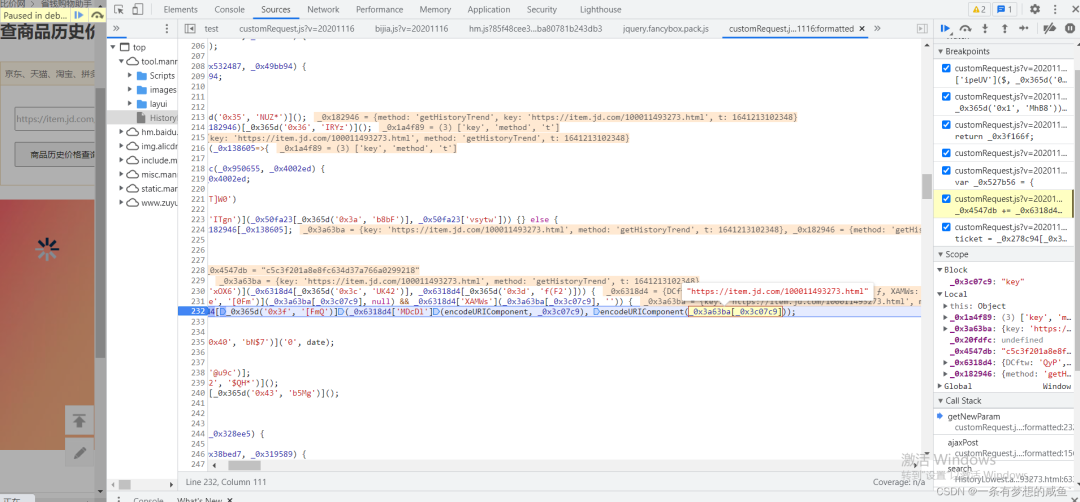 从之前的Network的图中可以发现cutomRequest.js文件是在tool.manmanbuy.com/Scripts目录下的,什么?你没看见?那我再给你截图标明一下: