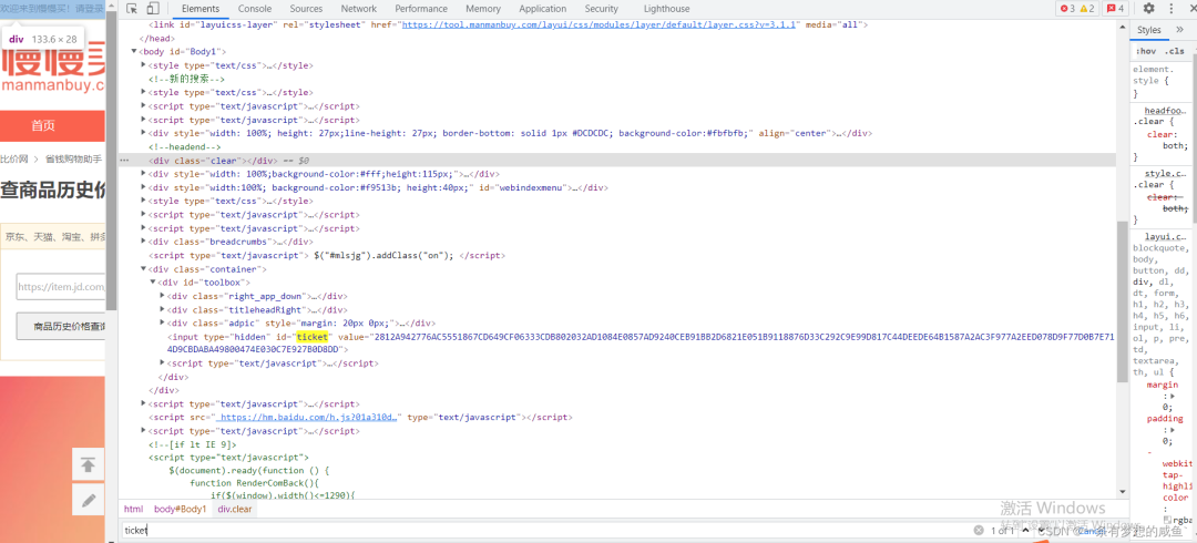 什么鬼,引用 #ticket ?还好懂一丢丢jquery,知道jquery里面能直接()引用dom,不然就凉凉了,那这里的逻辑大胆猜测应该就是 $("#ticket"),再往后看