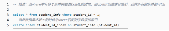 在频繁的查询的业务中可以对where筛选的字段建立索引,如果where筛选的字段有多个还可以建立联合索引