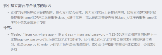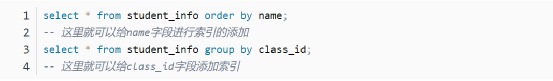 场景二:经常group by和order by的字段上建立索引(因为索引本身就是排好序的,相当于查询之前就已经进行了排序)