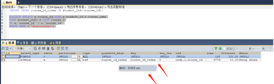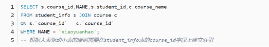通过对小表进行逐一遍历,同时在大表中的连接字段建立索引即可加快查询,本案例中,每次取出课程表中course_id和学生表中学生的course_id进行连接操作,在学生表中对course_id建立索引即可