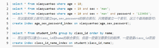 场景七:在频繁使用的列上建立索引或联合索引(频繁使用的字段应该在索引的左侧)