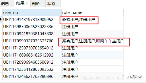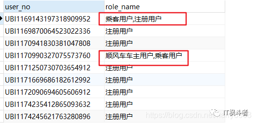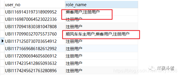 如图可知,一个用户可以有多种角色,现在要把多种角色合并为一条数据展示。