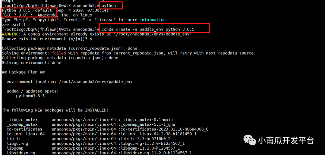 输入创建版本的虚拟环境命令:conda create -n paddle_env python=3.8.5