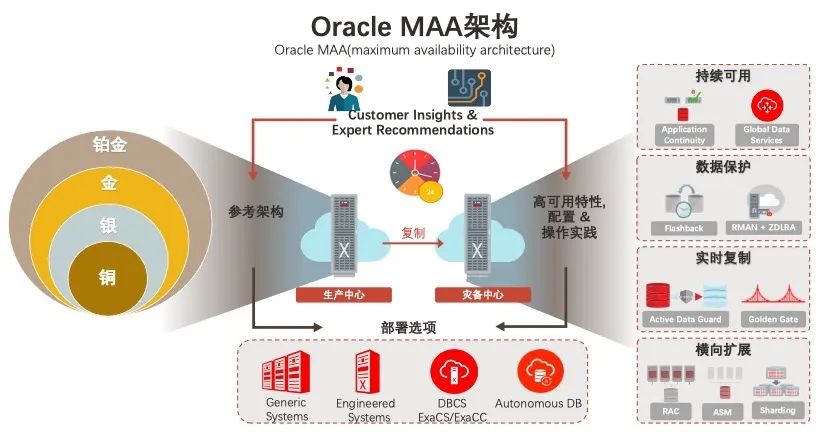 Oracle MAA架构部署灵活,可以在用户机房、公有云、私有云、Oracle集成系统、通用硬件架构上进行部署;