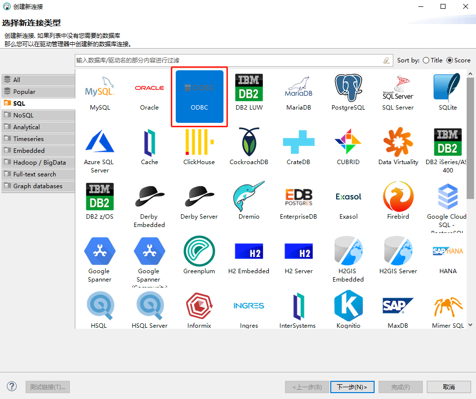 首先选择"创建新连接"中的"ODBC"项,