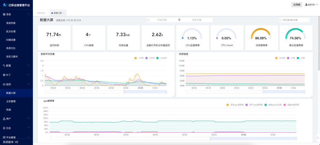 平台可勾选多个主机创建批次,通过批次实施批量操作,提供主机安装软件包版本、主机系统配置等多维度主机筛选策略,化整为零。自定义脚本、系统对比、主机扫描、批次处理、代理端操作、配置管理等产品功能助力全流程闭环管理,有效解决批量迁移难度高、配置管理困难的问题,可承载万级主机纳管。