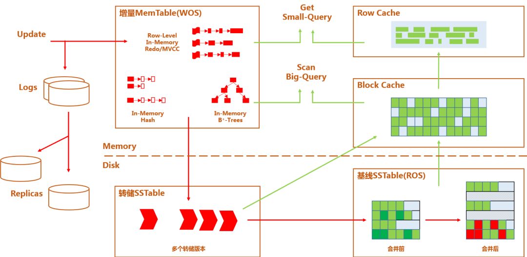 但是有一个架构上的缺点。在读的时候,可能你的数据在内存和磁盘上同时都有。那么我们的做法是说我们接受这个事实,然后在里面做一些优化。