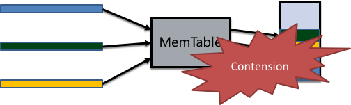 在系统中也大量存在类似的竞争场景,内存分配器是一个常见场景。多个线程在操作同一个memtable时,会从连续的内存块中分配内存,分配内存的操作就好似计数器的竞争。所以,要把memtable的内存分配操作做成分区的形式,减少多个核之间的竞争。