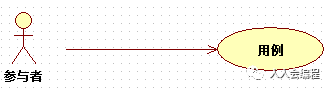 用例图一般使用一个人形符号表示一个参与者,一个椭圆表示一个用例,使用带箭头的线段表示他们之间的关系,箭头所指的方向为被动接受者。如: