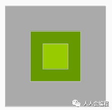 <FrameLayout android:layout_width="600dp" android:layout_height="600dp" android:background="@android:color/holo_green_light" xmlns:android="http://schemas.android.com/apk/res/android"> <TextView android:layout_gravity="center" android:layout_width="200dp" android:layout_height="200dp" android:background="@android:color/darker_gray"/> <TextView android:layout_gravity="center" android:layout_width="100dp" android:layout_height="100dp" android:background="@android:color/holo_green_dark"/> <TextView android:layout_gravity="center" android:layout_width="50dp" android:layout_height="50dp" android:background="@android:color/holo_green_light"/> </FrameLayout>