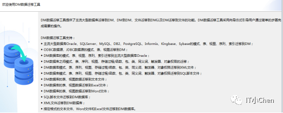DM数据迁移工具提供了主流大型数据库迁移到DM、DM到DM、文件迁移到DM以及DM迁移到文件的功能。DM数据迁移工具采用向导方式引导用户通过简单的步骤完成需要的操作。