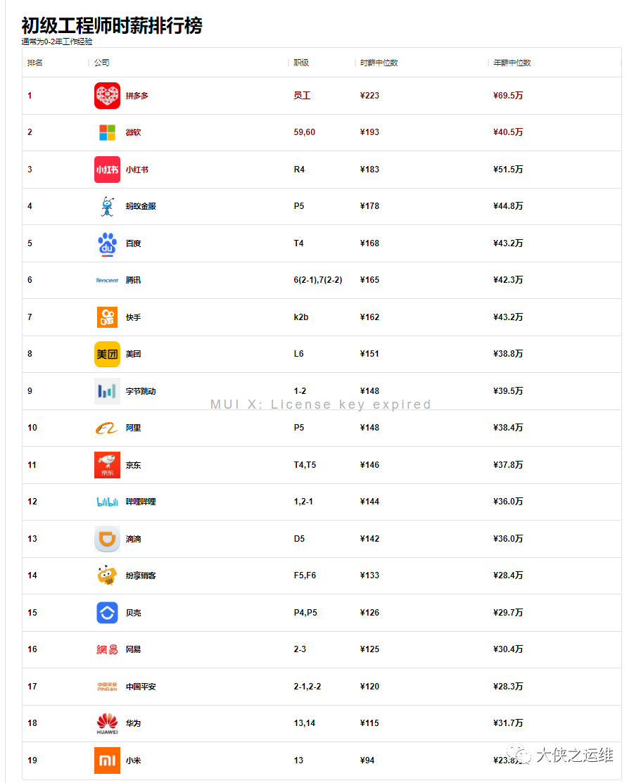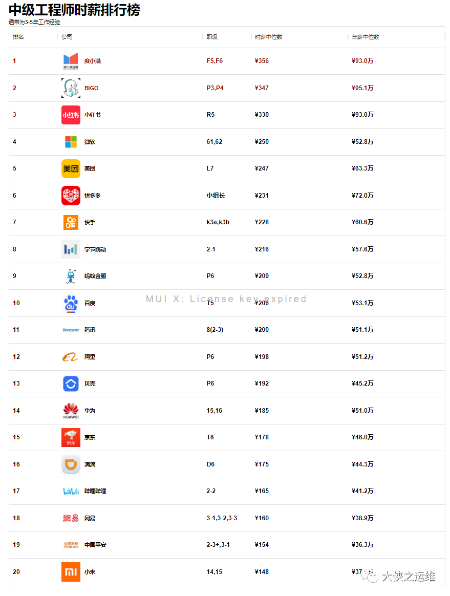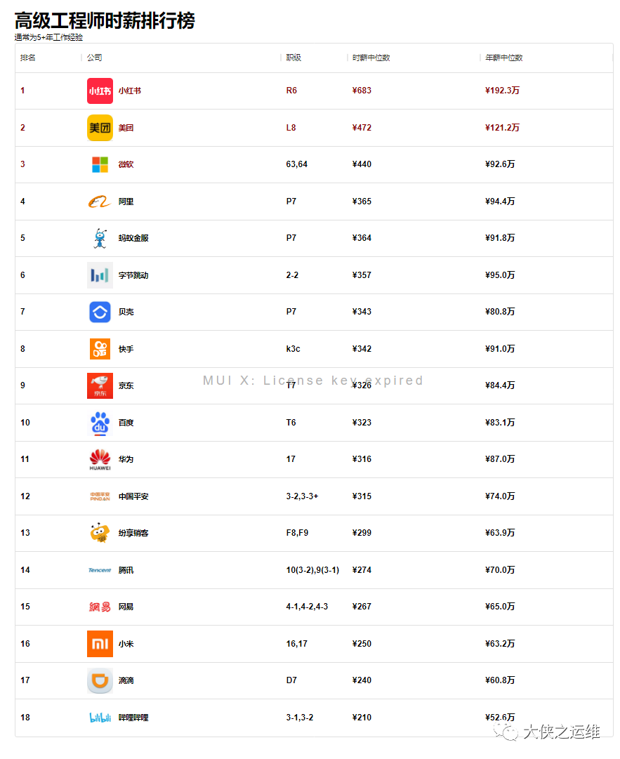 毕竟大厂的加班还是蛮多的,所以看时薪更加直观一些。分了不同的职级