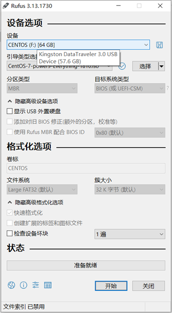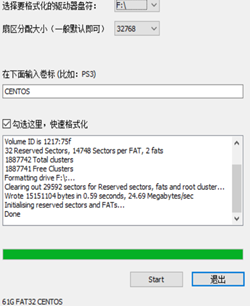 由于Win10系统对于大容量U盘只有exFAT和NTFS选项,此两种格式无法被Linux系统识别,故如选用大容量U盘作为镜像盘,需要预先用第三方工具对U盘进行FAT32格式化,此处选用Guiformat工具来进行格式化操作。参考下图,参数均为默认配置。
