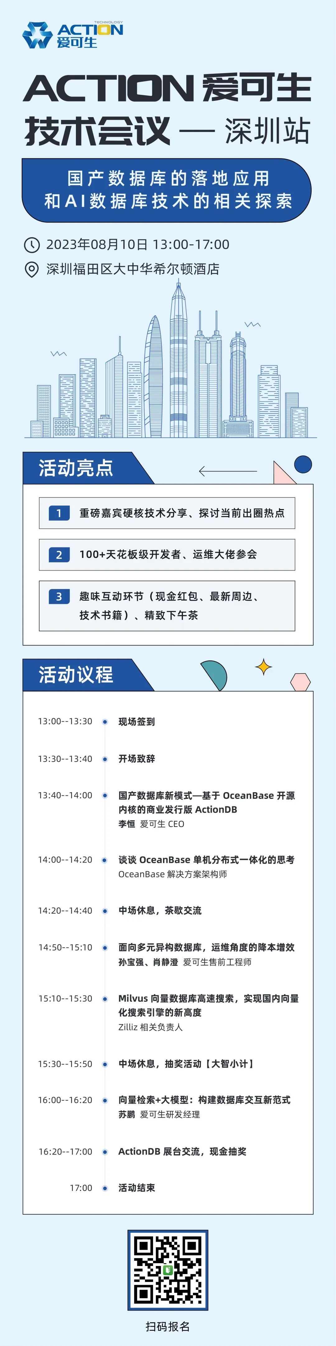 8.10 由爱可生主办的技术交流会议将深圳举办,期待与您线下交流。