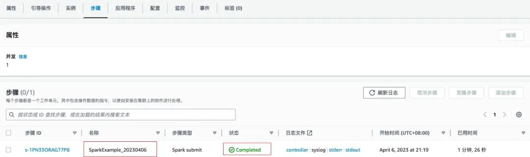 import boto3import redisimport timefrom datetime import dateif __name__ == "__main__":today = date.today()d1 = today.strftime("%Y%m%d")# {region}替换为你需要创建 EMR 的 Regionclient = boto3.client('emr',region_name='{region}')# 替换{redis-endpoint}为你 redis 连接地址pool = redis.ConnectionPool(host='{redis-endpoint}', port=6379, decode_responses=True)r = redis.Redis(connection_pool=pool)job_id = r.get('cluster_id_' + d1)step_id = r.get('SparkExample_' + d1)print(job_id)print(step_id)while True:# 查询作业执行结果result = client describe_step(ClusterId=job_id,StepId=step_id)emr_state = result['Step']['Status']['State']print(emr_state)if emr_state == 'COMPLETED':# 作业执行完成breakelif emr_state == 'FAILED'# 作业执行失败# do somethine# ......breakelse:time.sleep(10)