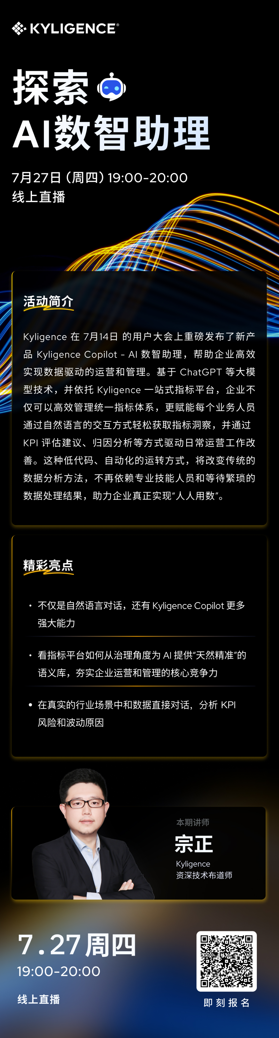 错过用户大会?周四线上直播带你探索 AI 数智助理 Kyligence Copilot