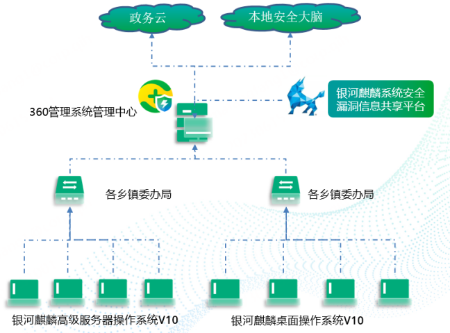 某政府客户对传统终端进行国产化升级改造,同时搭建安全防护体系。通过采用本解决方案为客户提供丰富的产品兼容能力,有效适配客户不同的CPU类型及操作系统,提供丰富的安全管理能力,如防病毒、漏洞管理、安全管控、全面保障了网信环境下的终端安全。