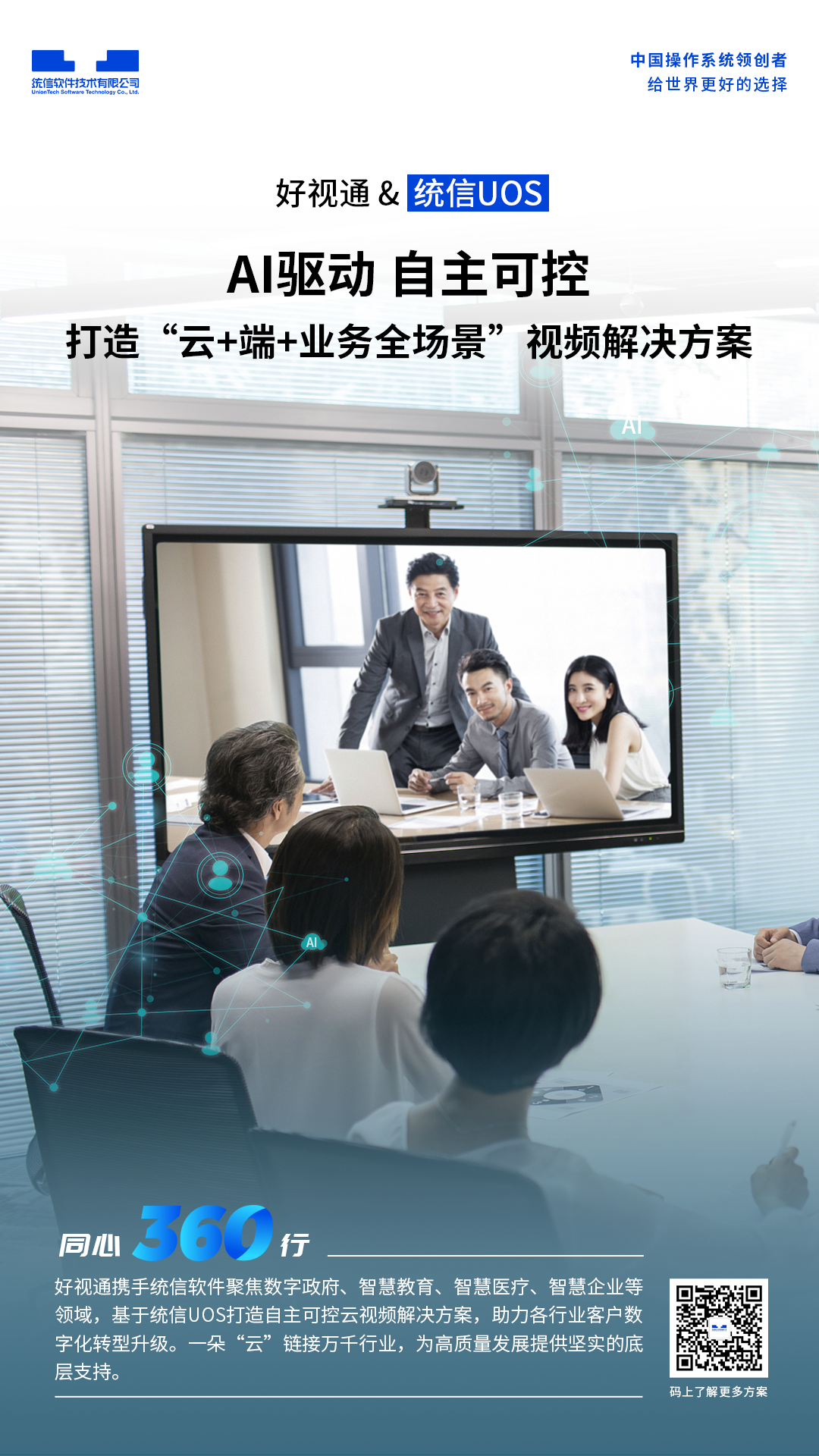 好视通积极响应国家战略方针,携手统信软件聚焦数字政府、智慧教育、智慧医疗、智慧企业等领域,全力推进数信融合进程。