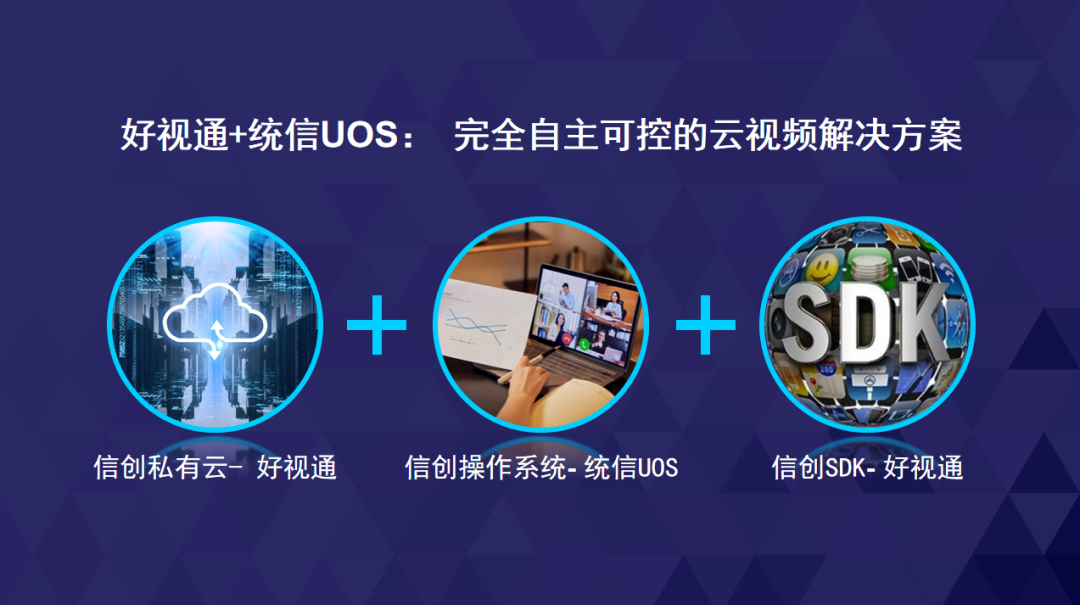 基于统信UOS+好视通自研核心音频和视频技术,可提供完全自主可控的云视频解决方案;
