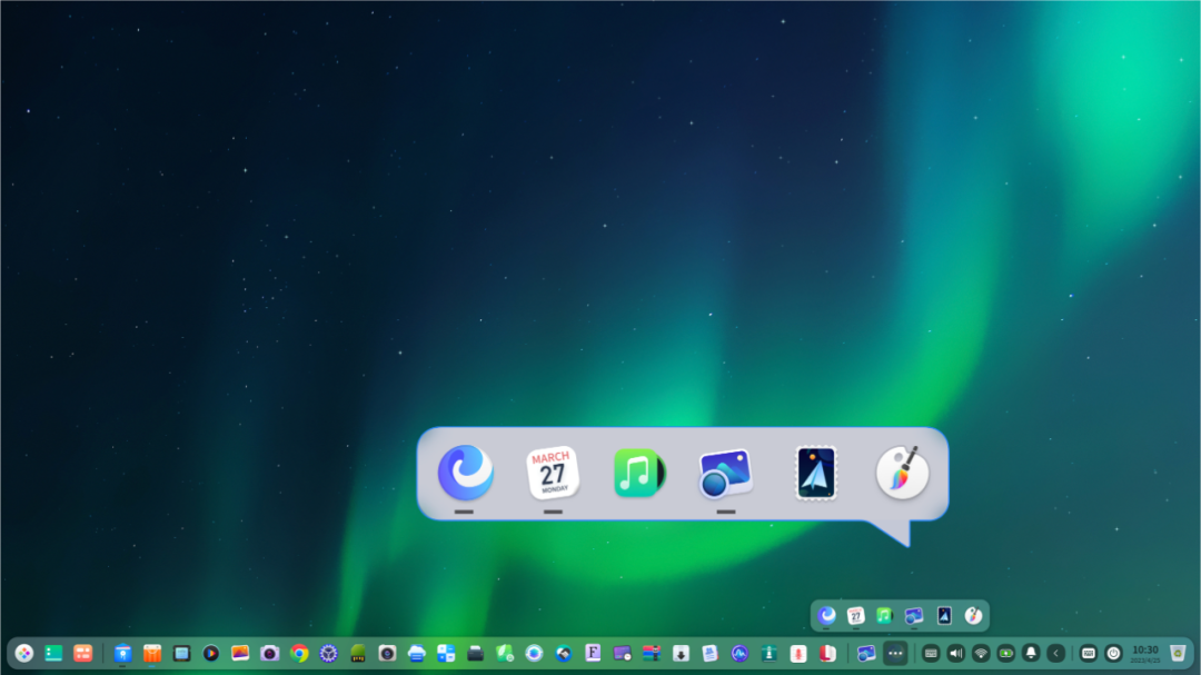 当任务栏的驻留应用超出任务栏的显示范围时,任务栏将提供“溢出区域”展示多出的应用,方便你快速找到想要打开的应用图标。