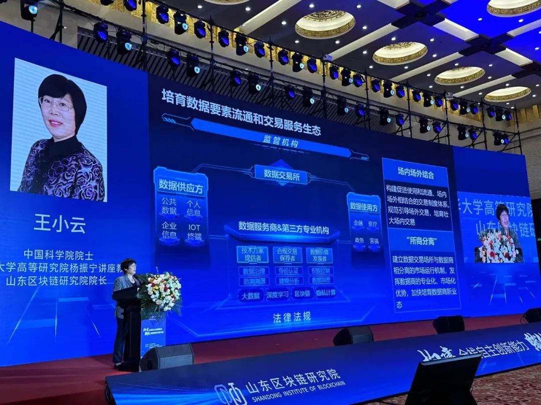 大会现场,中国科学院院士、山东区块链研究院院长王小云进行成果发布。王小云表示,数据要素市场化时代已经到来,要把安全贯穿于数据供给、流通、使用全过程。王小云现场发布了数据要素可信流通解决方案全景图,通过打造可信数据隐私计算引擎和可信多方协同引擎,实现双引擎协同,形成数据要素价值创新体系,充分挖掘数据价值。