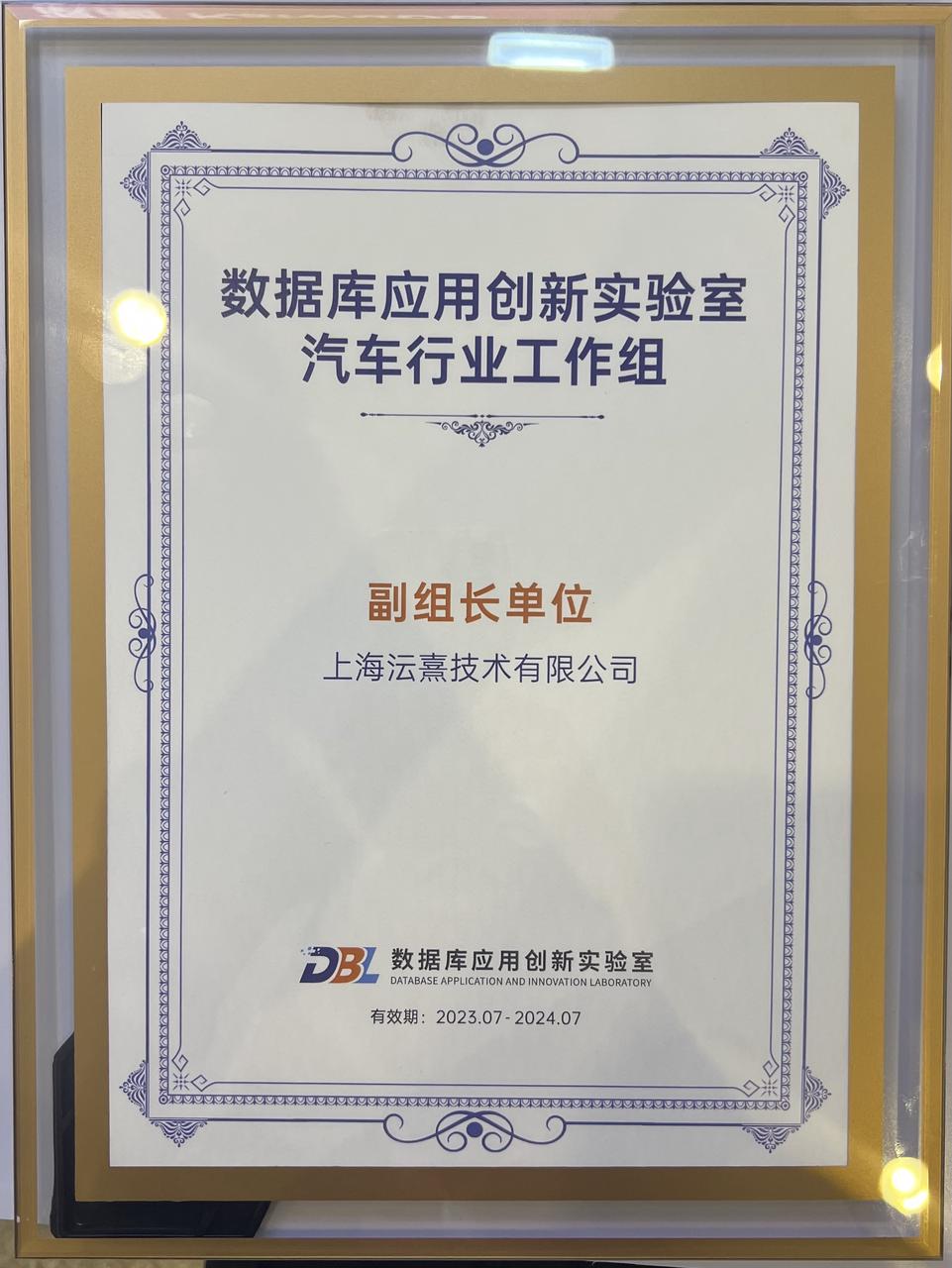 4. 获颁“数据库应用创新实验室汽车工作组”副组长单位证书