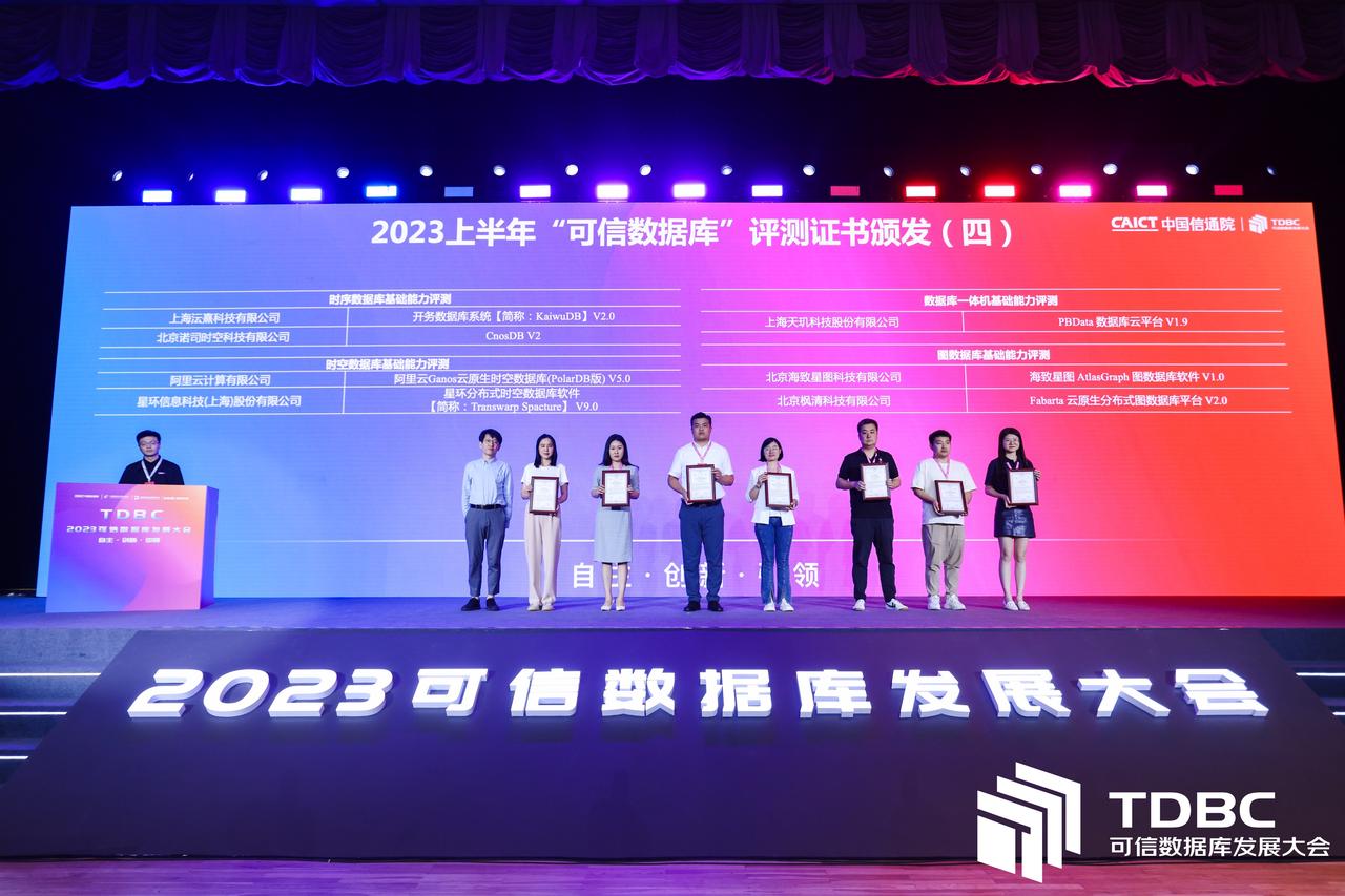 2. 通过 2023 上半年“可信数据库”评测,获颁证书