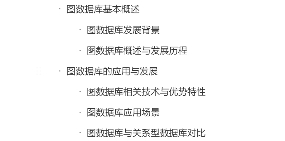 报告第二章具体介绍了图数据库的发展背景、发展阶段以及图数据库的优势特性、应用场景与相关技术要点。现有的数据库解决方案难以做到异构、多类型数据集间的整合通信,而图数据库则能解决传统数据库难以解决的问题。本章节望通过对图数据库技术的基本要点进行剖析,能帮助读者更加清晰地掌握图数据库技术,此处仅展示部分截图,具体内容可查阅报告。