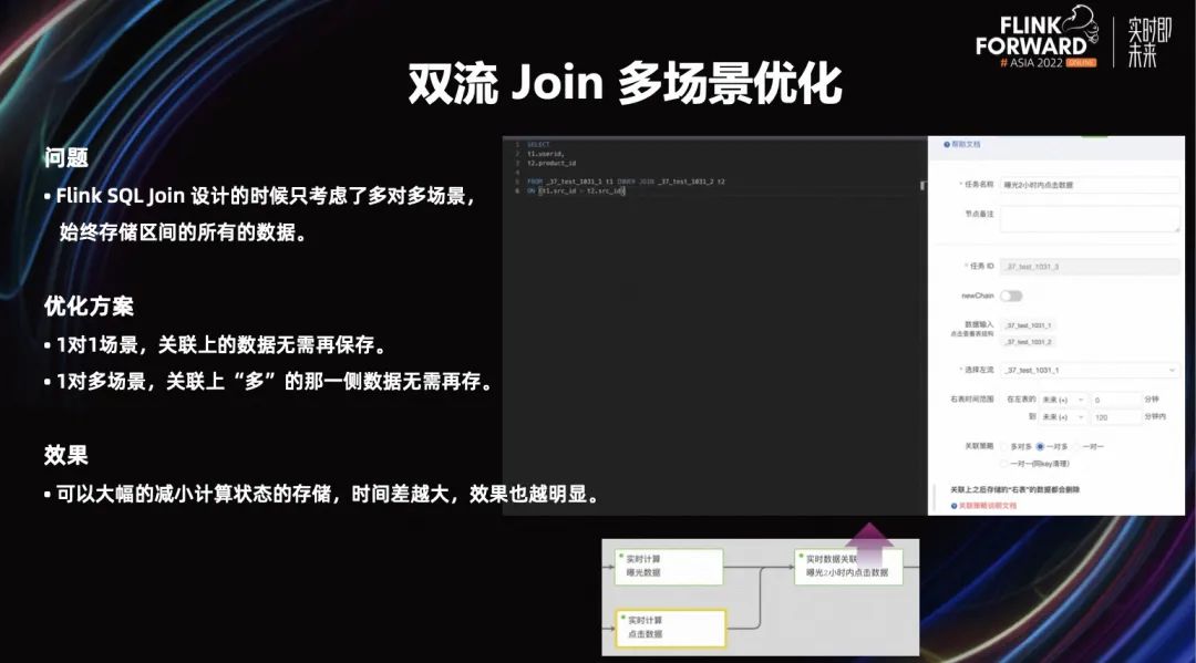 Flink 的双流 Join 只考虑多的多对多的场景,它会存储期间内的所有数据。但有一些应用场景,只需关心一对一或者一对多的场景。比如像一对一的场景,关联上的数据是不需要保存的,而一对多的场景,关联上多的那一侧数据也不需要保存,对此做了一些优化策略。