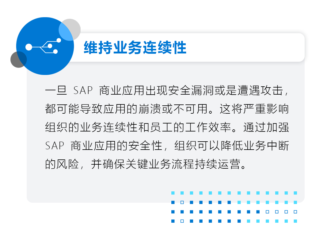 可以看出,SAP 应用的安全对组织的稳定运营、数据保护、合规性和声誉都具有重要意义。保护 SAP 应用的安全性是组织在数字时代中不可或缺的一部分,应该得到充分的重视和投入。