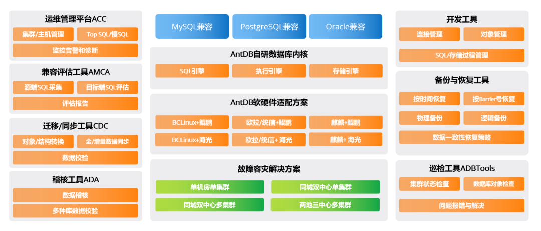 图2:AntDB数据库全栈、全兼容、全生命周期解决方案