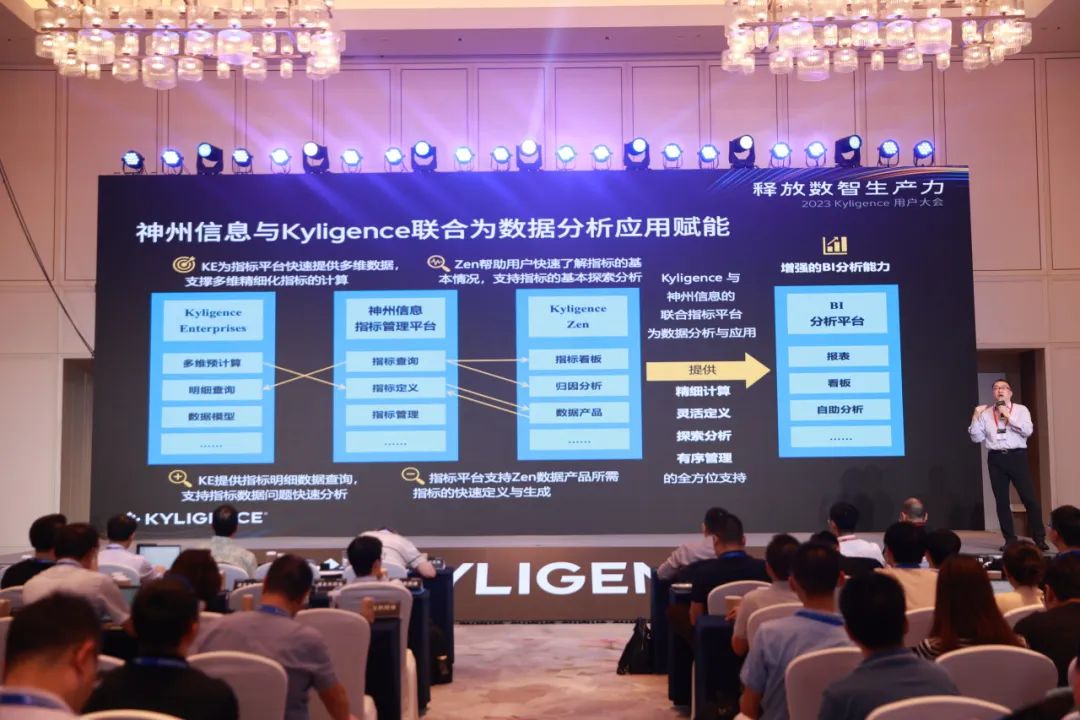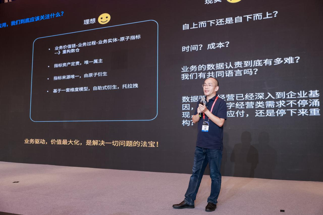 神州信息数据分析主管余俊越先生带来了《企业级指标管理平台构建及服务》的主题演讲,他提到企业级指标管理平台是未来信息化、数字化升级,实践智慧经营管理的关键组件。