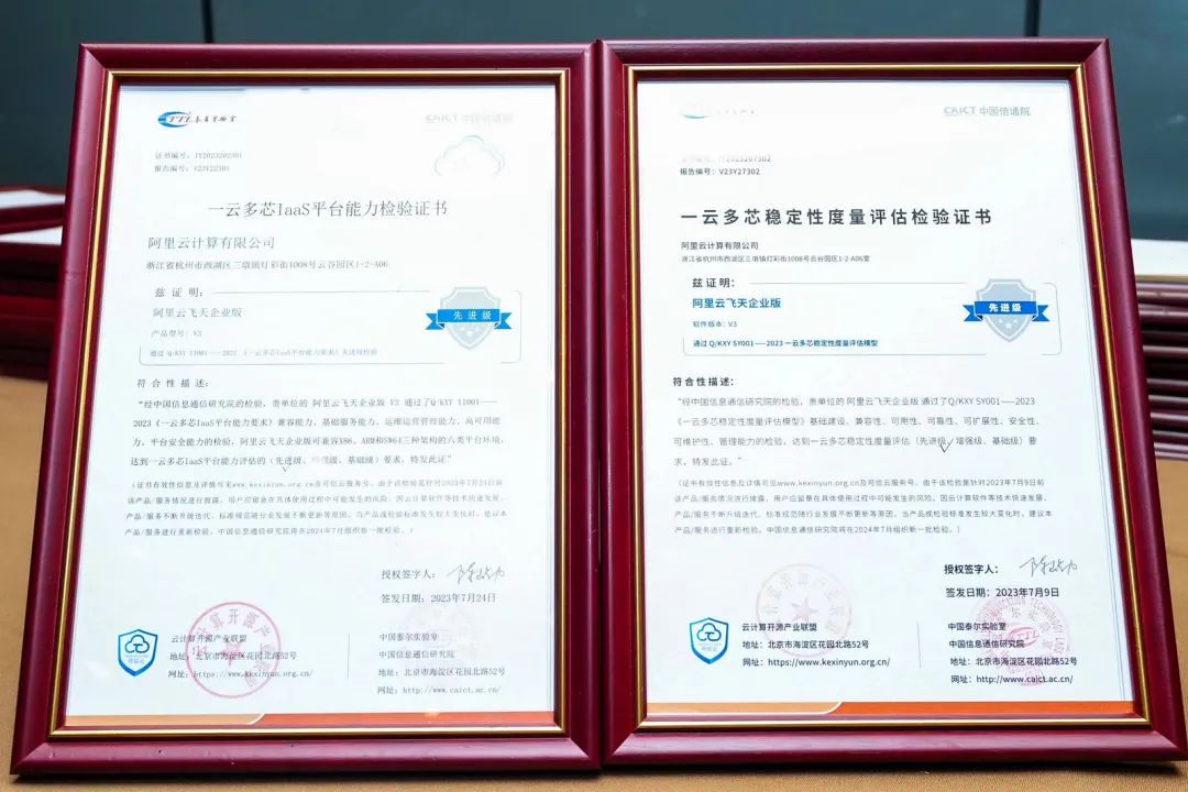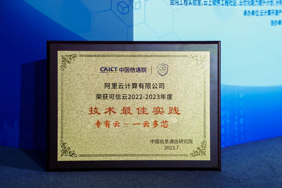 此外,飞天企业版“一云多芯”解决方案也被评选为本年度可信云技术最佳实践。