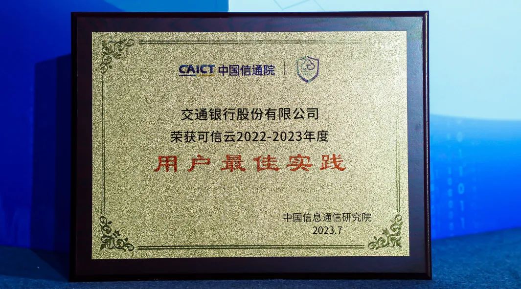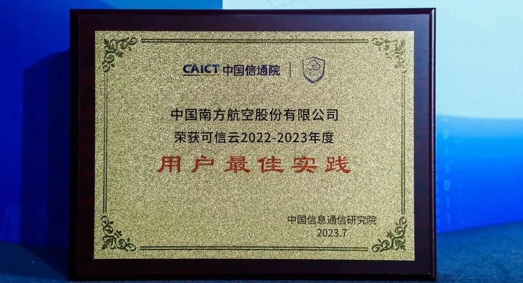 本次大会上,南方航空和交通银行基于与阿里云在“一云多芯”方面的深度合作和领先实践,双双获评2023年度可信云用户案例最佳实践。