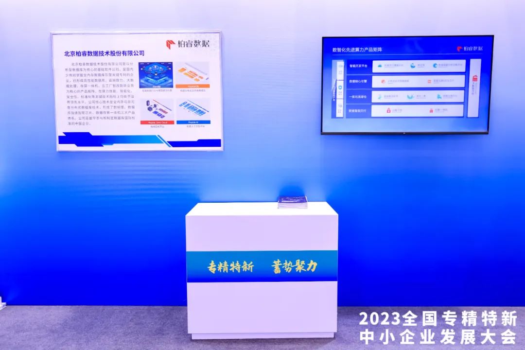 大会同期活动专精特新展览,特邀了全国80余家具有代表性的专精特新中小企业参加。其中,作为国家级专精特新“小巨人”中的智能数据算力企业代表、首家因突破数据库核心技术而获评国家级专精特新“小巨人”的民营企业,柏睿数据受邀参展,也是此次参展的三家北京市企业之一,展示了公司行业大模型解决方案及数智化先进算力产品矩阵。