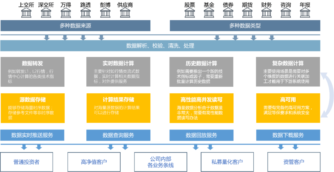 在业务层面上,行情中心正从简单地为下游系统提供行情原始数据的查询和下载服务,向交易和投研系统提供更多数据衍生服务演进。