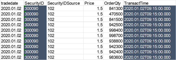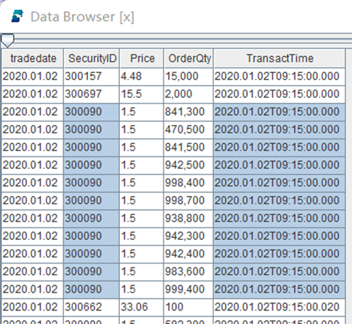 1.orderDS = replayDS(sqlObj=<select * from loadTable("dfs://order", "order") where Date = 2020.12.31>, dateColumn=`Date, timeColumn=`Time)2.tradeDS = replayDS(sqlObj=<select * from loadTable("dfs://trade", "trade") where Date = 2020.12.31>, dateColumn=`Date, timeColumn=`Time)3.snapshotDS = replayDS(sqlObj=<select * from loadTable("dfs://snapshot", "snapshot") where Date =2020.12.31>, dateColumn=`Date, timeColumn=`Time)4.inputDict = dict(["order", "trade", "snapshot"], [orderDS, tradeDS, snapshotDS])replay(inputTables=inputDict, outputTables=messageStream, dateColumn=`Date, timeColumn=`Time, replayRate=10000, absoluteRate=true)