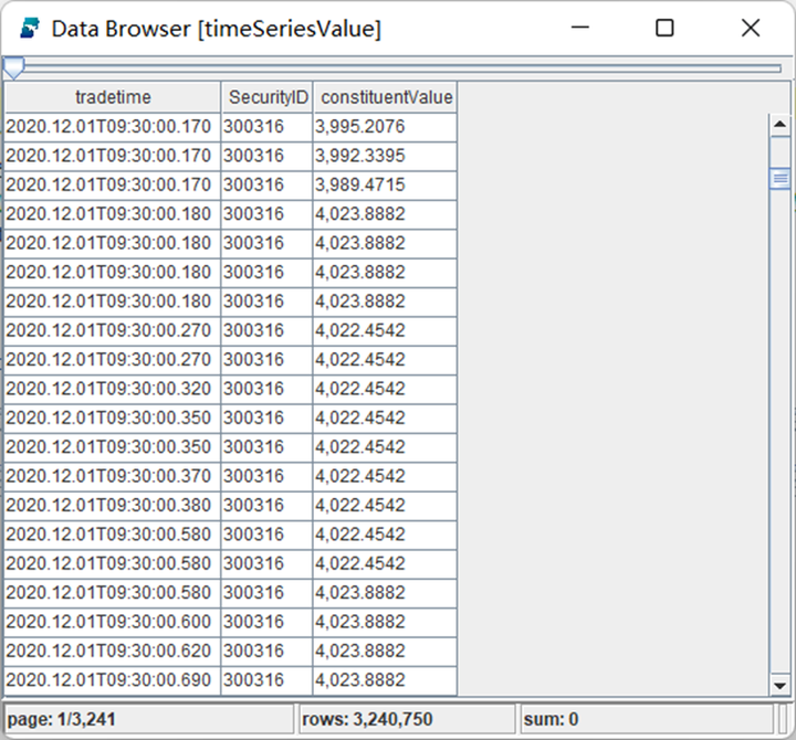 tmp = selectconstituentValue from timeSeriesValue pivot by tradetime, SecurityID