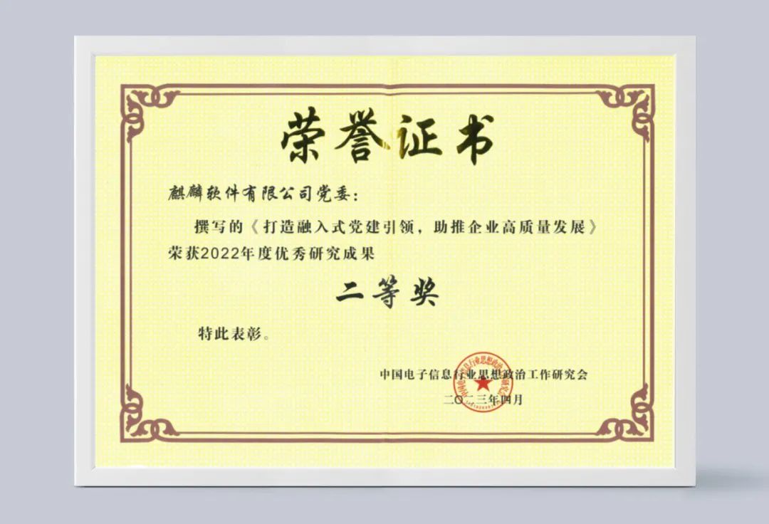 近日,中国电子信息行业思想政治工作研究会发布《关于表彰2021、2022年度优秀研究成果的决定》。麒麟软件申报课题《打造融入式党建引领,助推企业高质量发展》荣获2022年度优秀研究成果二等奖。
