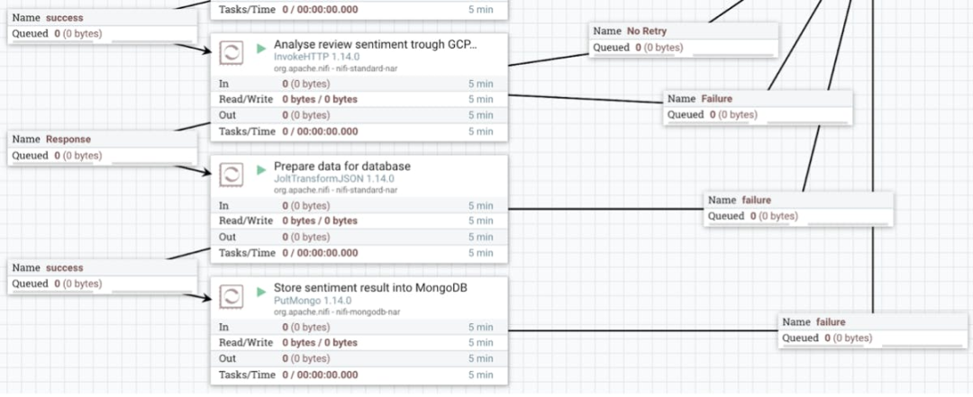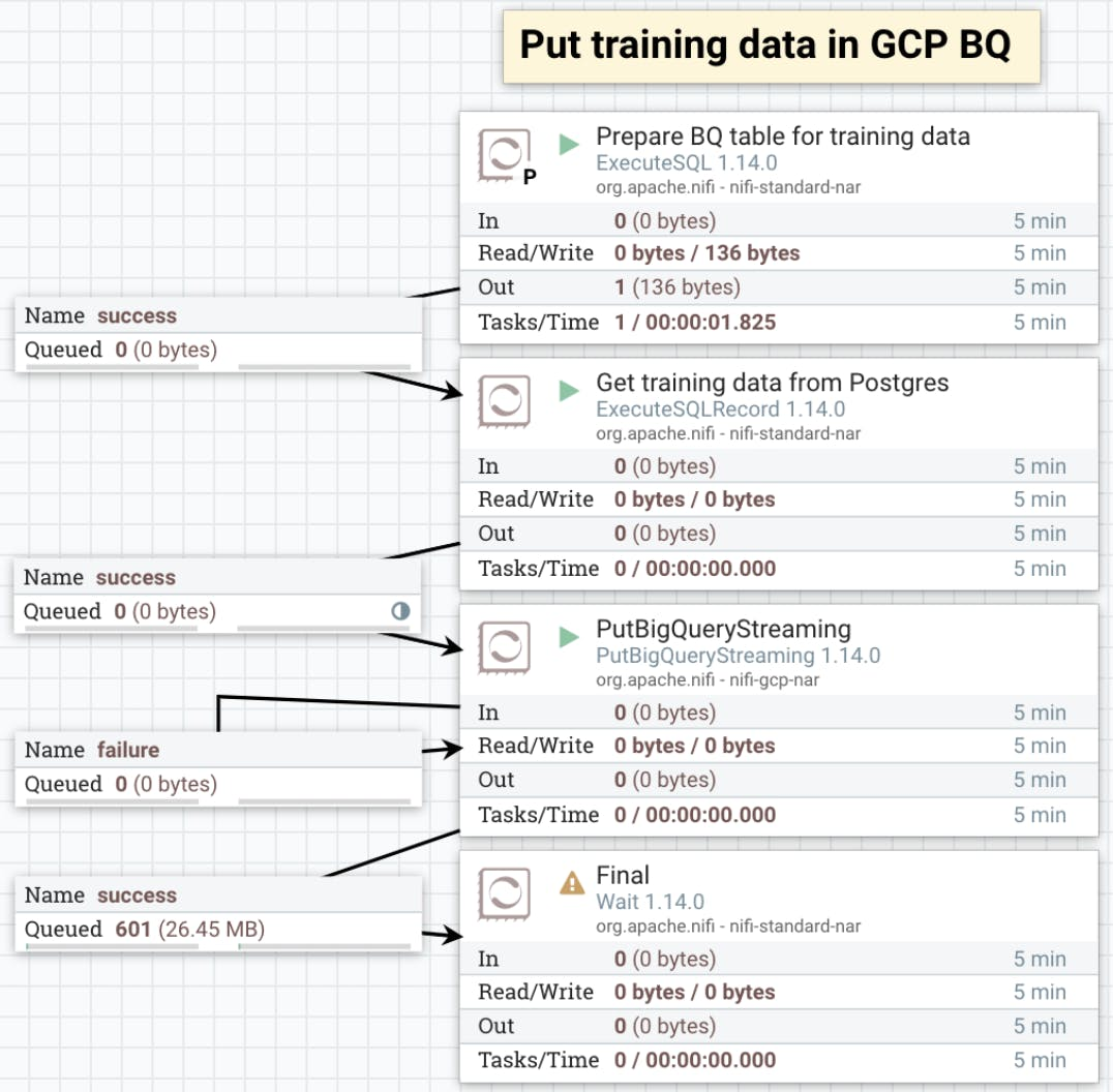 4. 然后,所有上述数据会通过 PutBigQueryStreaming 处理器插入至 BigQuery 表中。