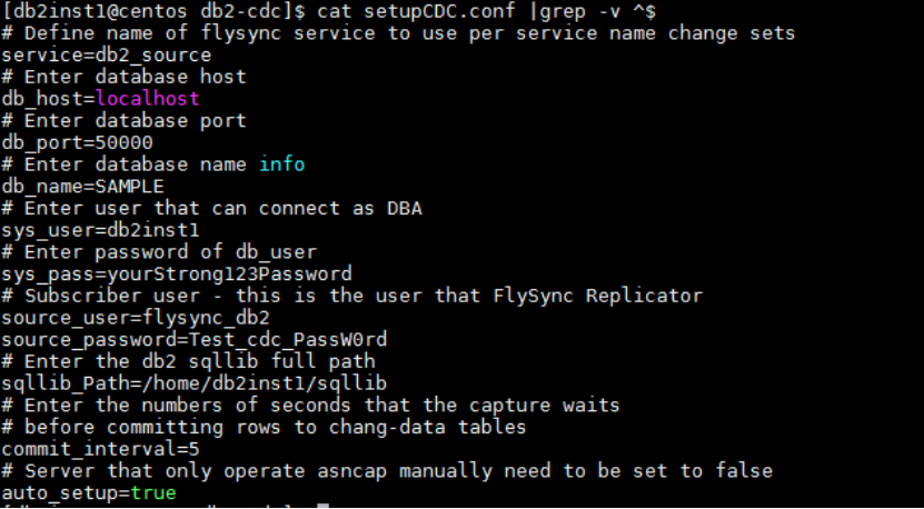 ./setupCDC.sh -cs按照2.1节将ALTER_CAPTURE_CHANGES.sql上传到db2服务器~db2inst1/tmpSQL/,并使用具有dbadm权限的用户执行