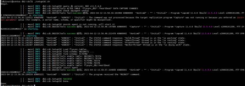 配置好flysync.tables和setupCDC.conf文件后,执行setupCDC.sh文件: