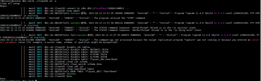 执行cleanCDC.sh -a 可以清除所有CDC配置: